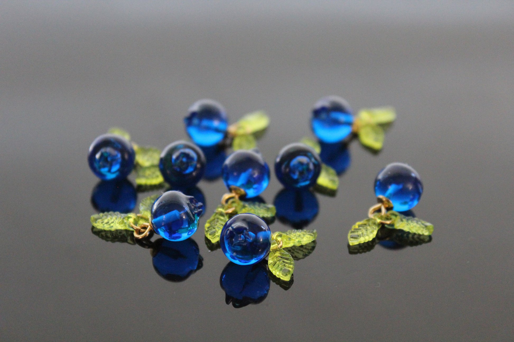 Bulk Resin Blueberry charms for jewelry making with silver and gold hooks and leaves