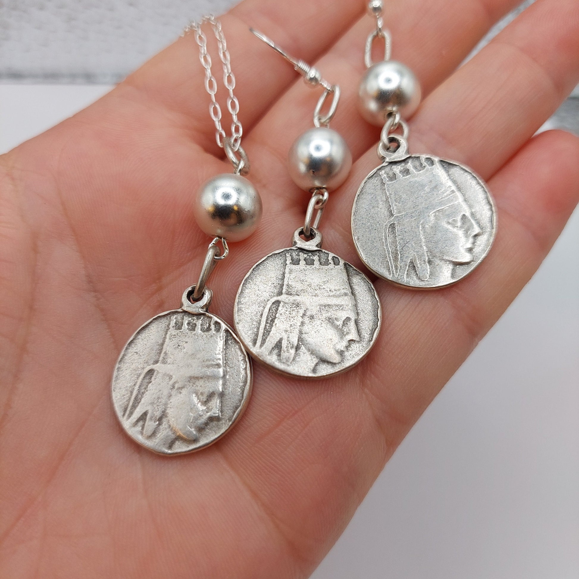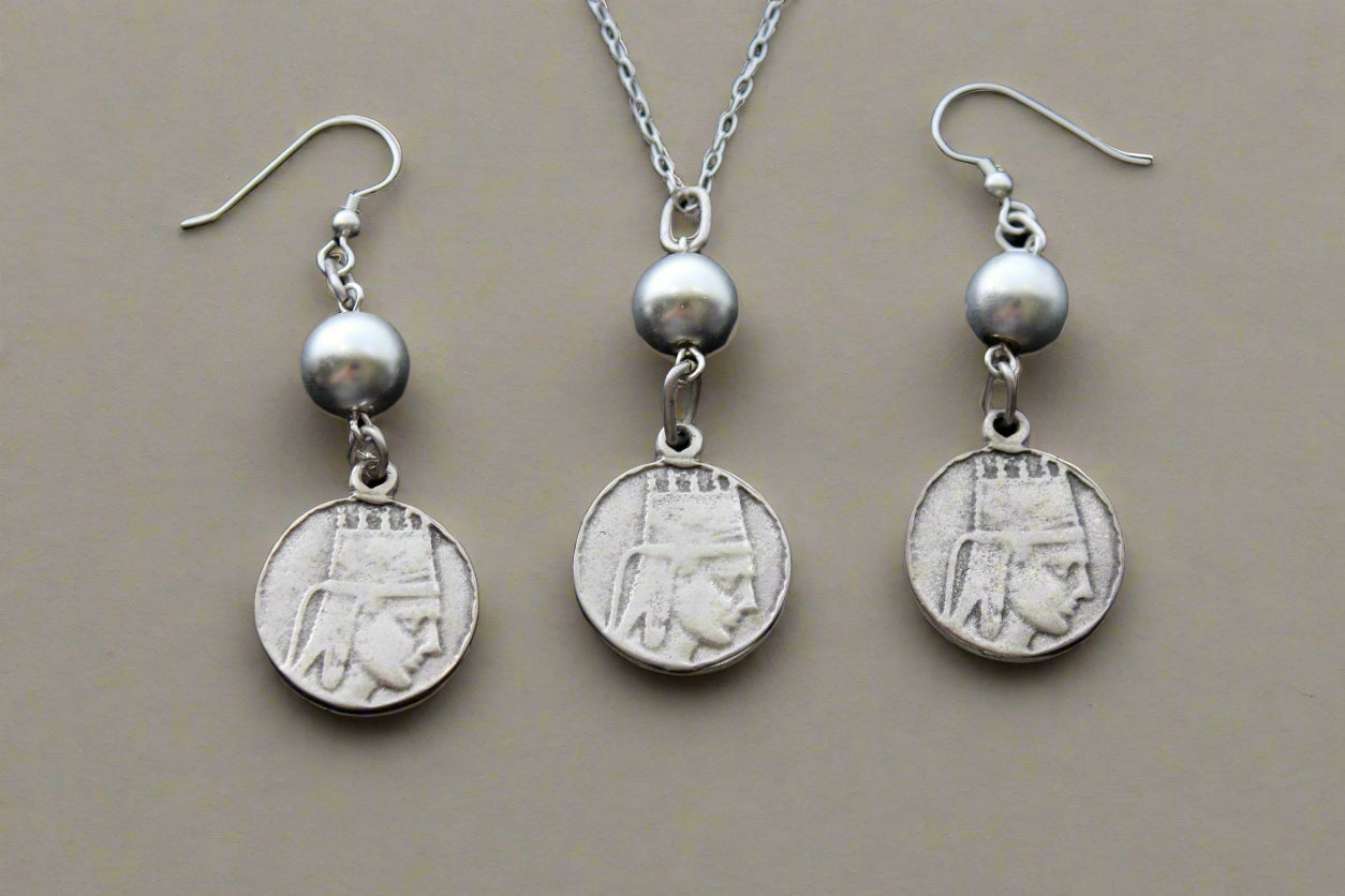 Tigranes the Great coin jewelry with natural silver plated hematite