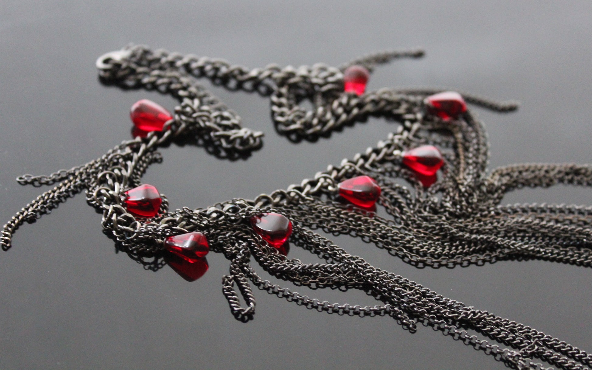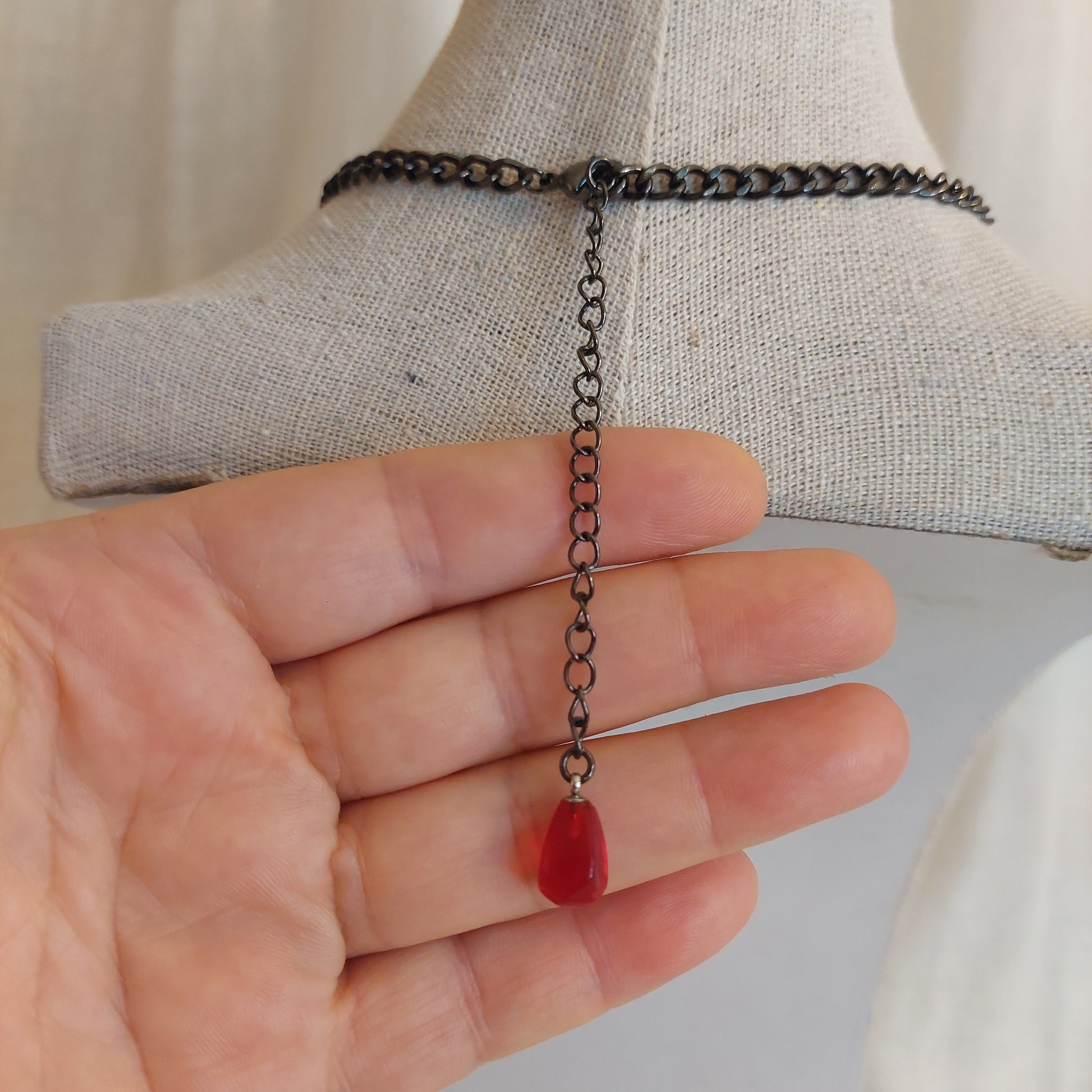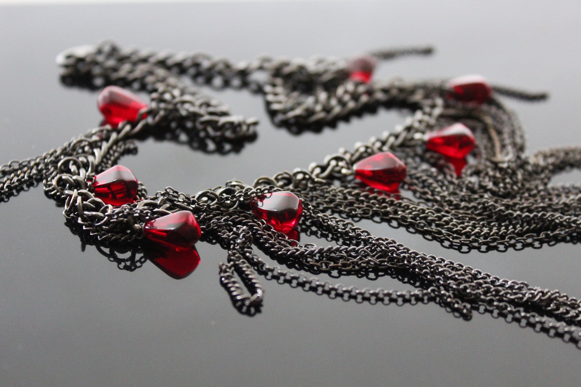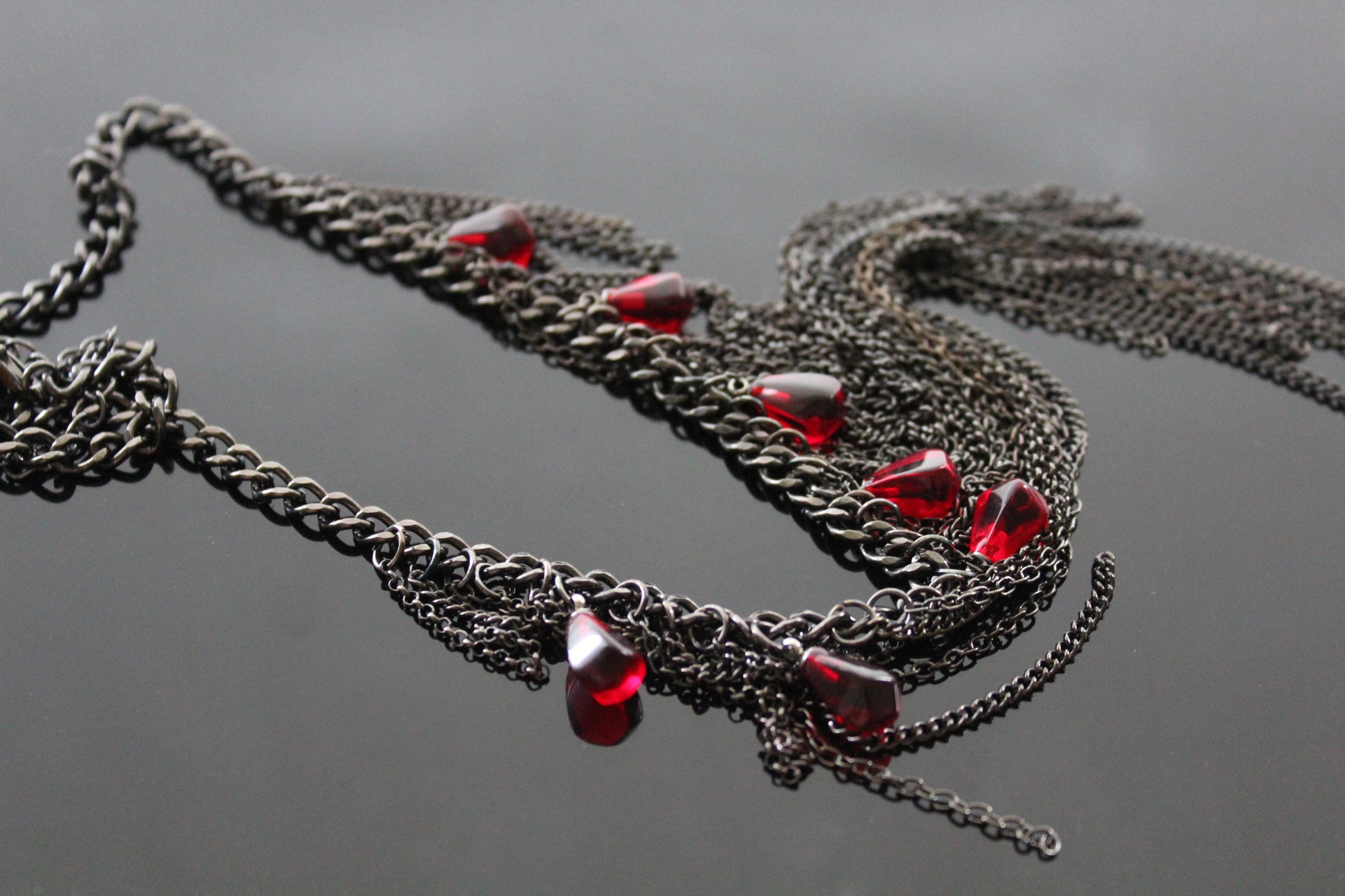 Add a touch of elegance to any outfit with our stunning Black Stainless Steel Rib Cascade Necklace. Crafted with black stainless steel and adorned with glass pomegranate beads, this necklace is sure to make a statement. Elevate your style and show off your unique fashion sense.
